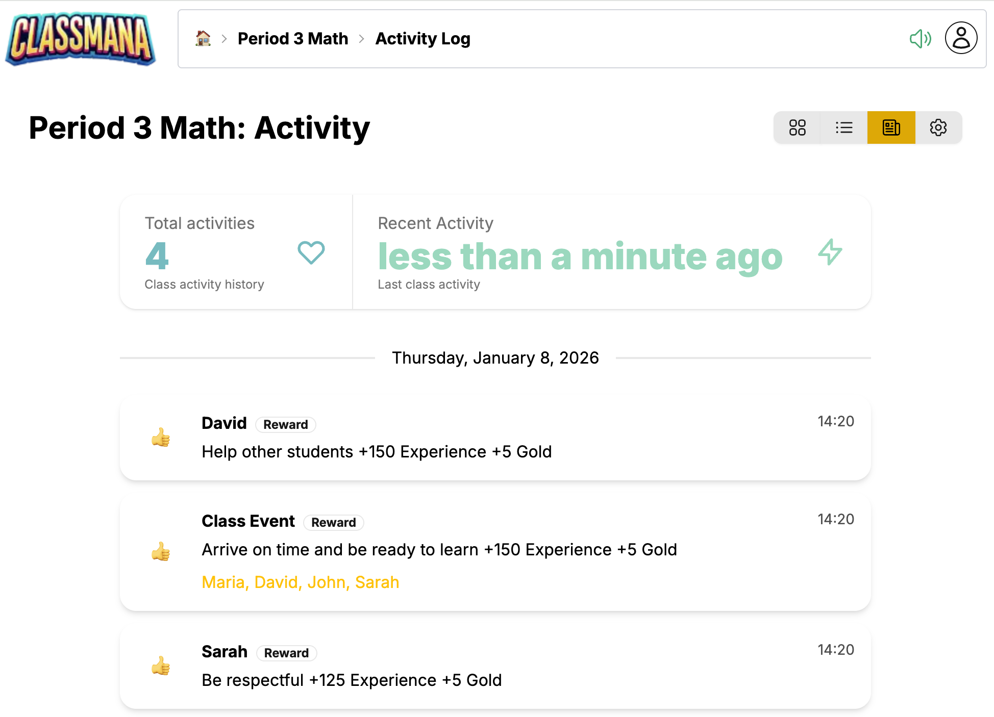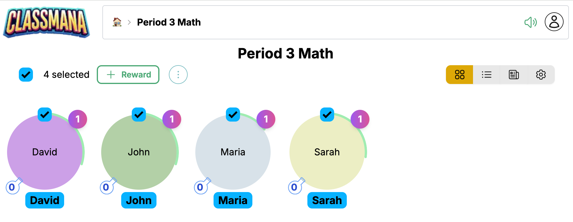 - Haz clic en Recompensar para aplicar a todos los estudiantes seleccionados