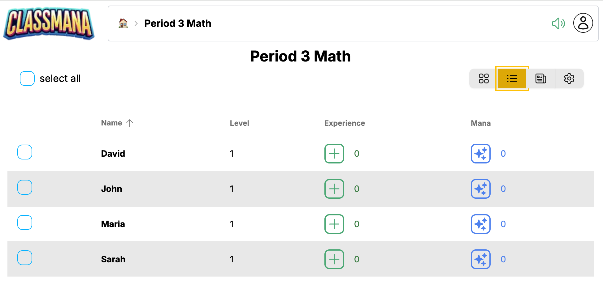 - Haz clic en la casilla de verificación de cada estudiante que quieras seleccionar