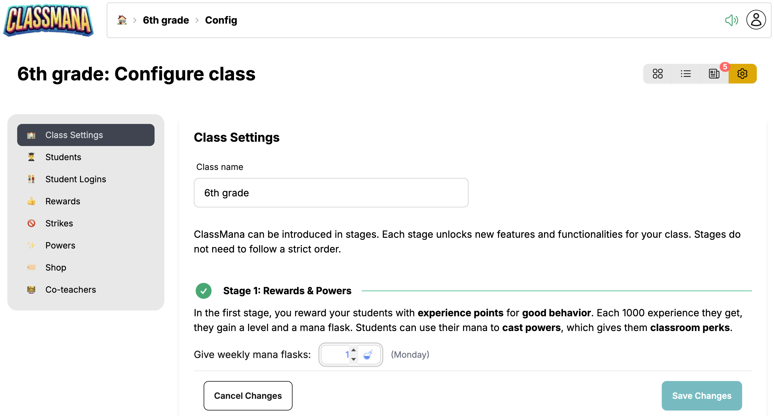 Puedes personalizar recompensas, poderes y la distribución de maná en cualquier momento para adaptarlos a tu estilo de enseñanza y las necesidades del aula.